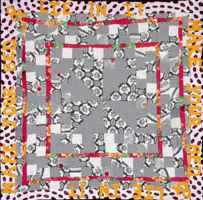 March 23, 2026March 23, 2026 Sarah Odedina Fabric Art I make quilts and wall hangings, often incorporating words that will brighten any wall or bed.